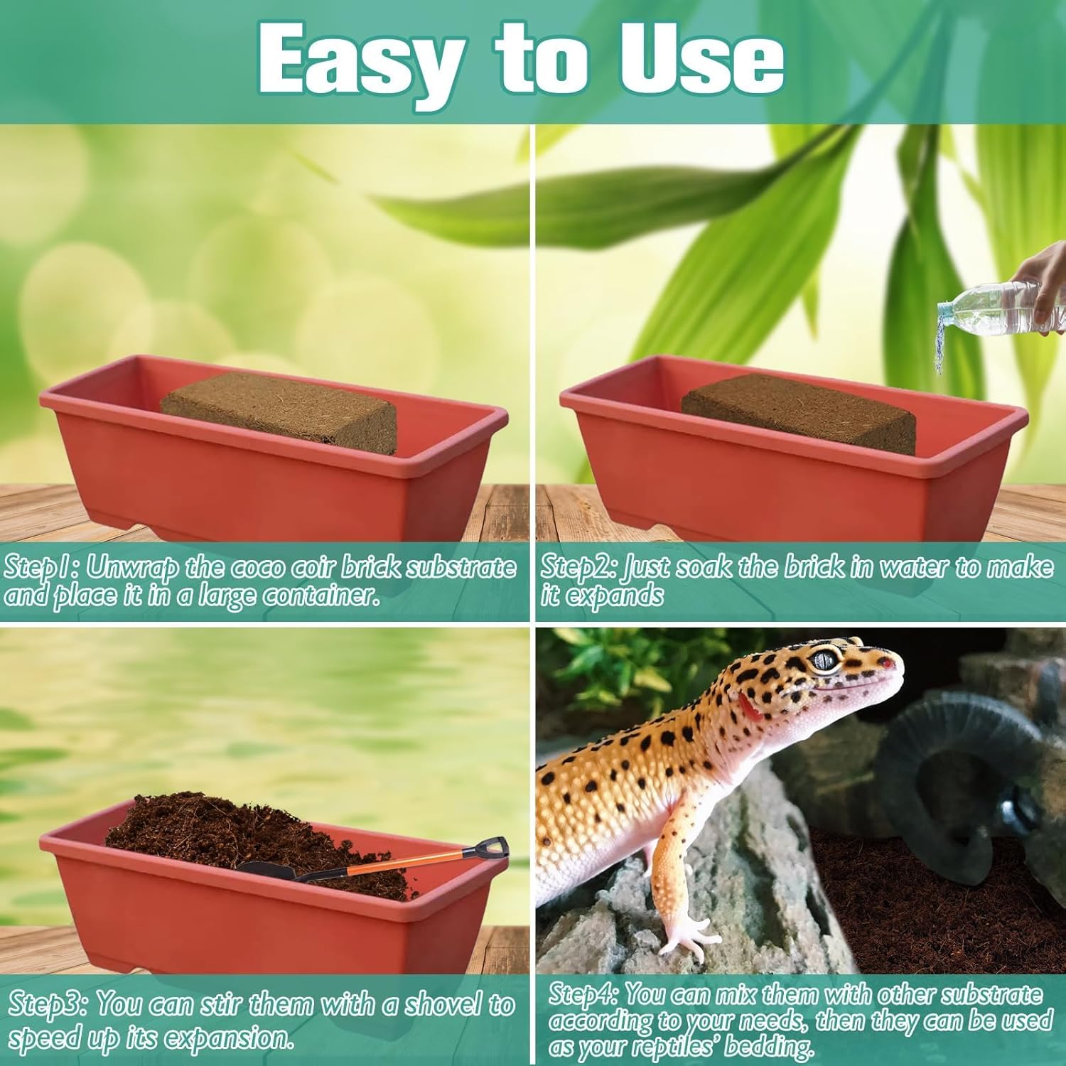 - 🏜️ 𝑷𝒓𝒆𝒎𝒊𝒖𝒎 𝑵𝒂𝒕𝒖𝒓𝒂𝒍𝒊𝒔𝒕𝒊𝒄 𝑯𝒂𝒃𝒊𝒕𝒂𝒕: The ultra-soft texture mimics the loose soils of your gecko's native arid environment while being completely digestible if accidentally ingested. Lightweight yet durable, it stores easily as compact bricks then transforms into lush bedding that satisfies all natural digging and hiding instincts