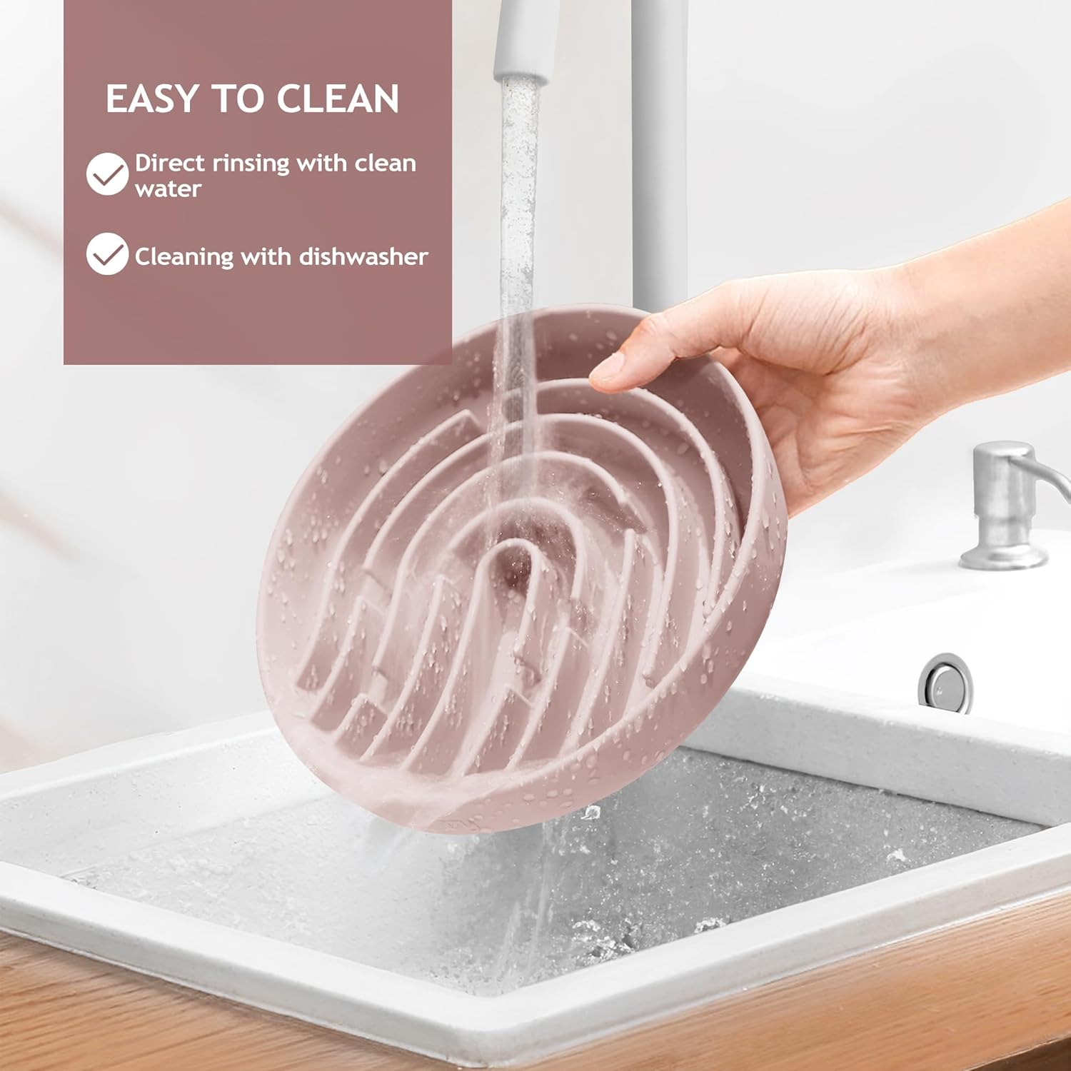 Coomazy Large Silicone Slow Feeder Dog Bowls, Interactive Puzzle Toy for Pets Food Training, Keeps Dogs Busy, Prevents Puppy Overeating (Dusty Pink, Large: 3.2Cup)