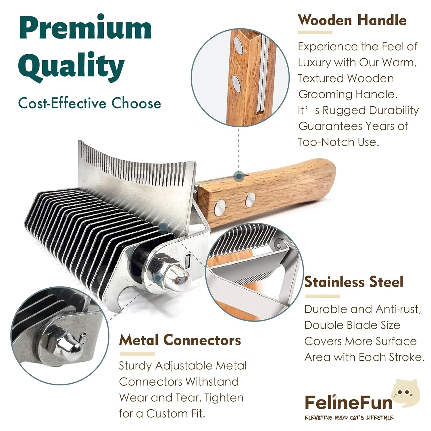 - ใ๐๐ผ๐บ๐ณ๐ผ๐ฟ๐๐ฎ๐ฏ๐น๐ฒ ๐๐ฟ๐ผ๐ผ๐บ๐ถ๐ป๐ด ๐๐ ๐ฝ๐ฒ๐ฟ๐ถ๐ฒ๐ป๐ฐ๐ฒใRounded Ends make it Safer on Sensitive Skin, Functioning as an Effective Undercoat Brush. The Anti-Slip High-Qulity Wooden Grip Guarantees a Comfortable and Relaxing Brushing Experience for Both you and your Feline Companion.