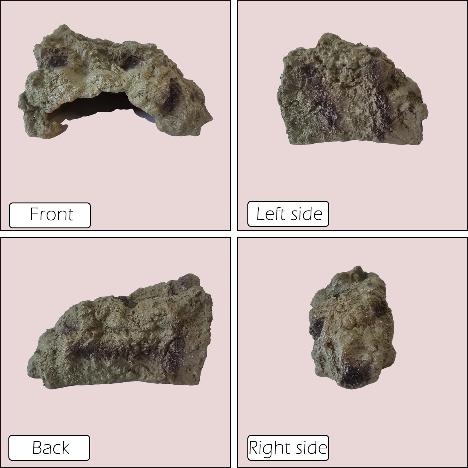 - Space-saving shape - One of the corners is right-angle of this aquarium cave. It’s delicately designed for the tank angle for saving space. It’s more stable when you place this reptile rock by the corner of the snake hide box or terrarium.