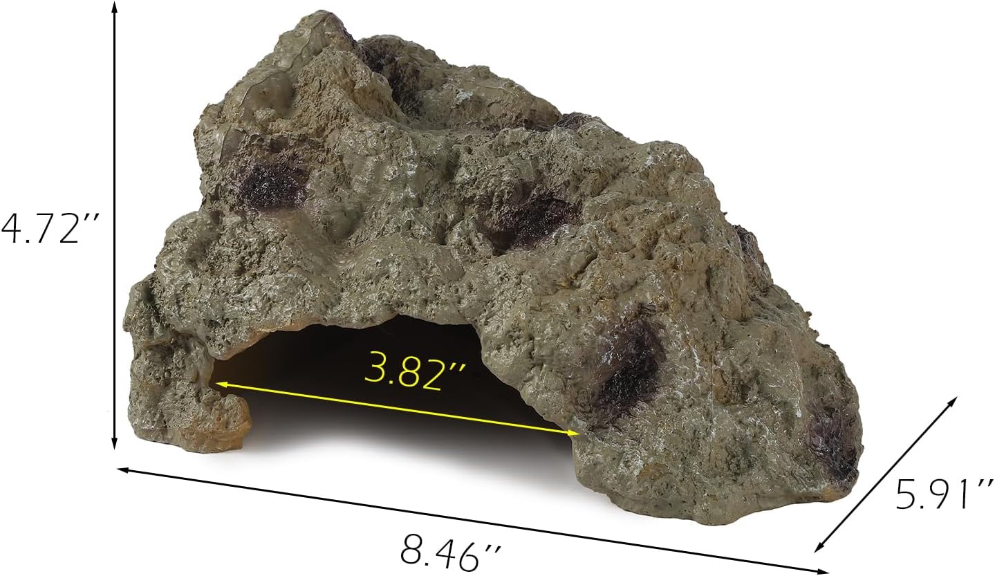 - Size – The cave has a suitable size entrance (Please read the measurement pic for details). The edges of this reptile cave and rock are crafted exquisitely to be smooth and safe to avoid cutting your pet. This reptile rock creates a comfortable and natural hide for ball python, bearded dragon, leopard gecko, tortoise and lizards, etc.