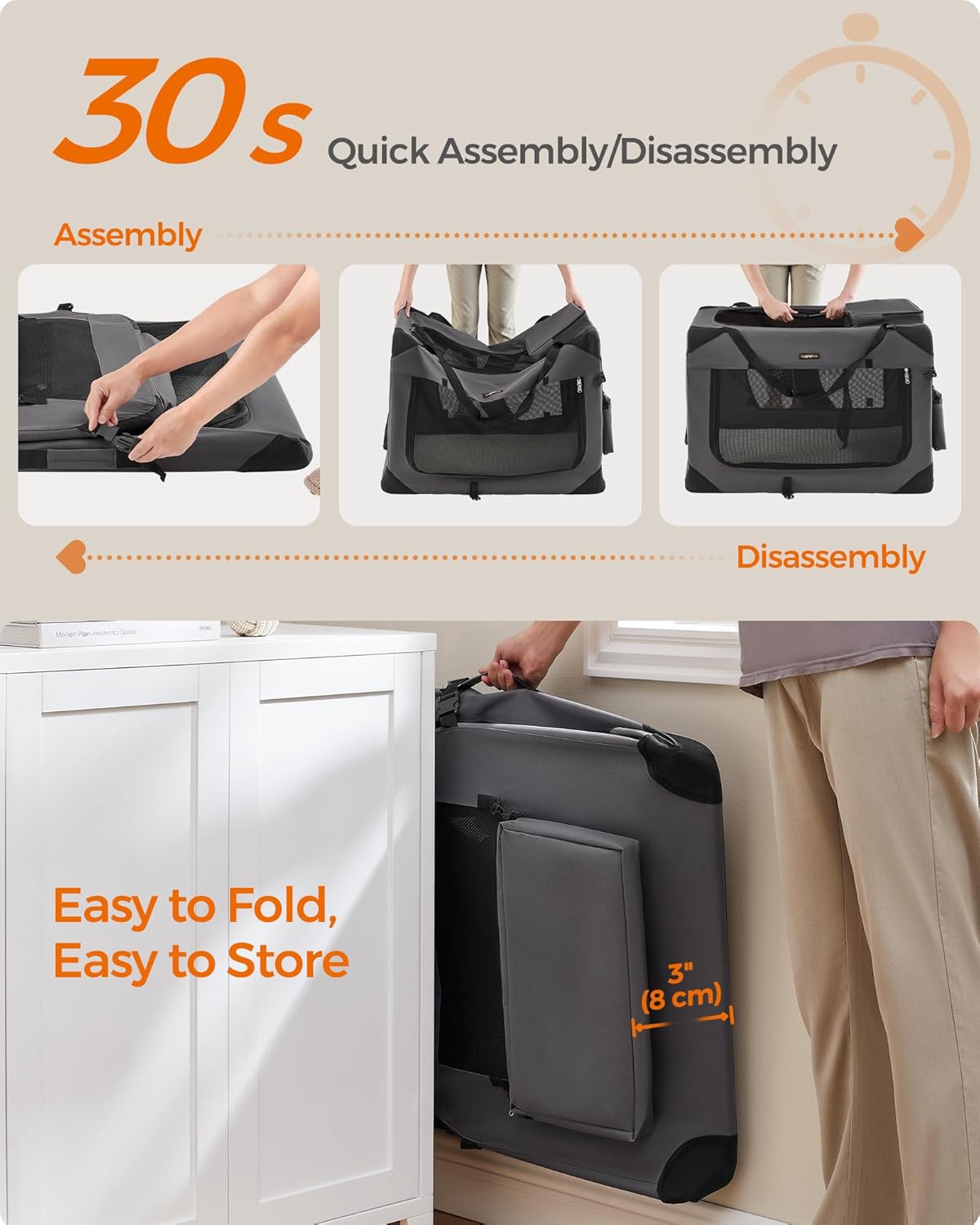 Feandrea 36 Inches Collapsible Soft Dog Crate, Portable Travel Dog Crate for Indoor and Outdoor Use, Dog Carrier Kennel with Safety Zippers, for Living Room, Car, Travelling, Camping, Gray UPDC90G01
