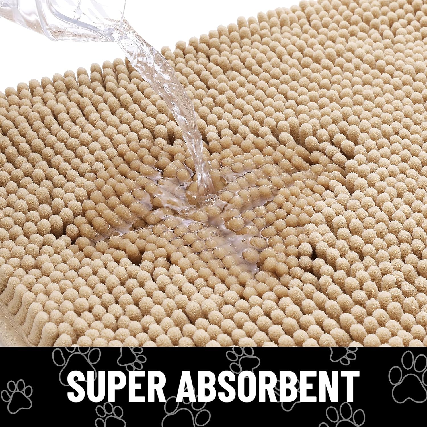 Smiry Dog Door Mat for Muddy Paws, Absorbent Dirt Trapper Non Slip Quick Dry Washable Chenille Mat for Mud Dogs, Entry Rug for Indoor and Outdoor (30x20 Inches, Beige)