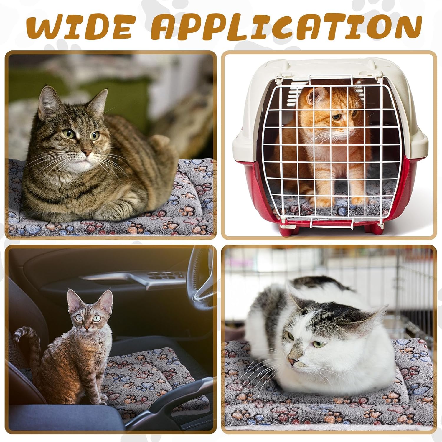 4 Pack Ultra Soft Dog Cat Bed Mat with Cute Prints Reversible Fleece Dog Crate Kennel Pad Cozy Washable Thickened Hamster Guinea Pig Pet Bed Mat for Small Animals(21 x 14 Inches,Gray)