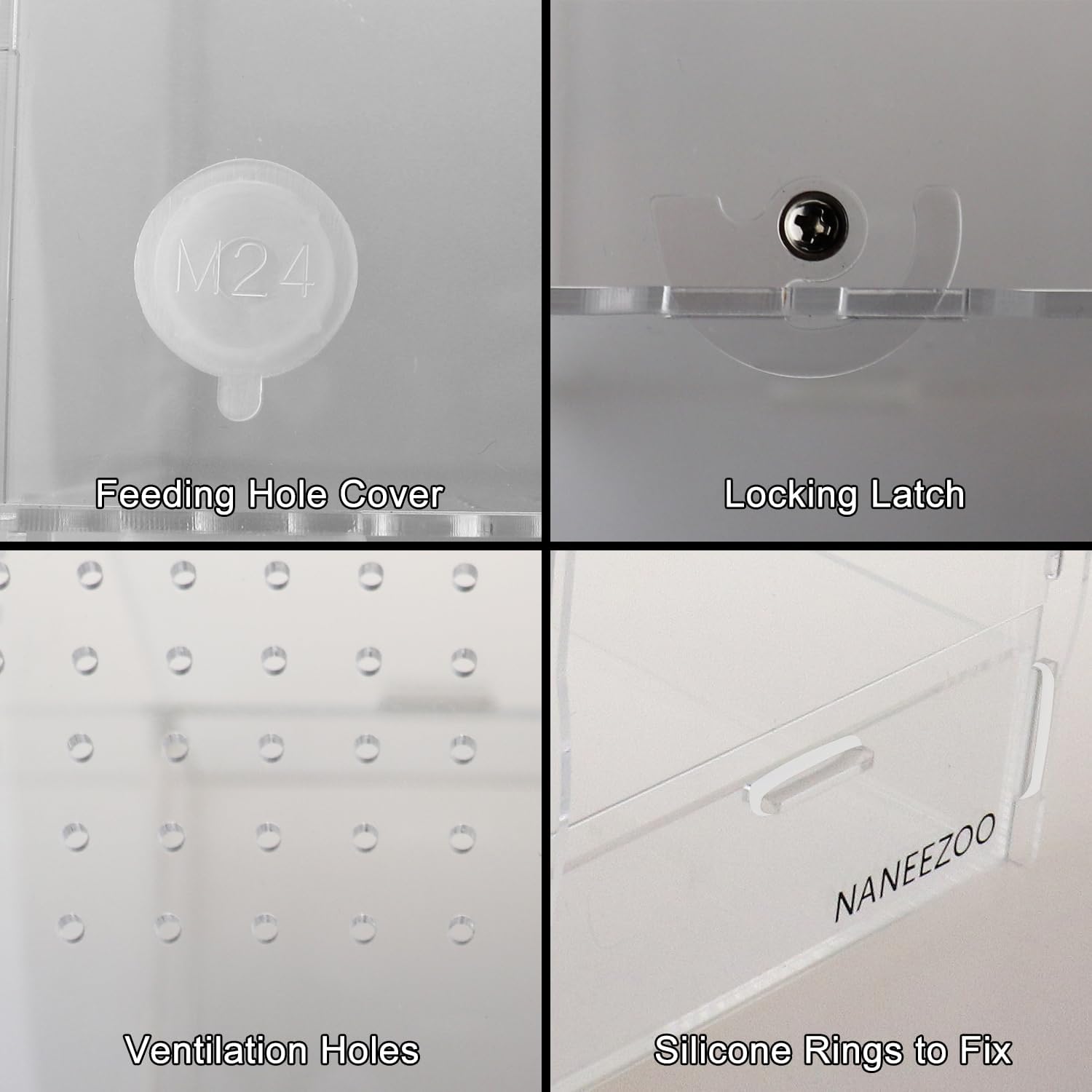 - Included Components : Locking latch, feeding hole, acrylic enclosure