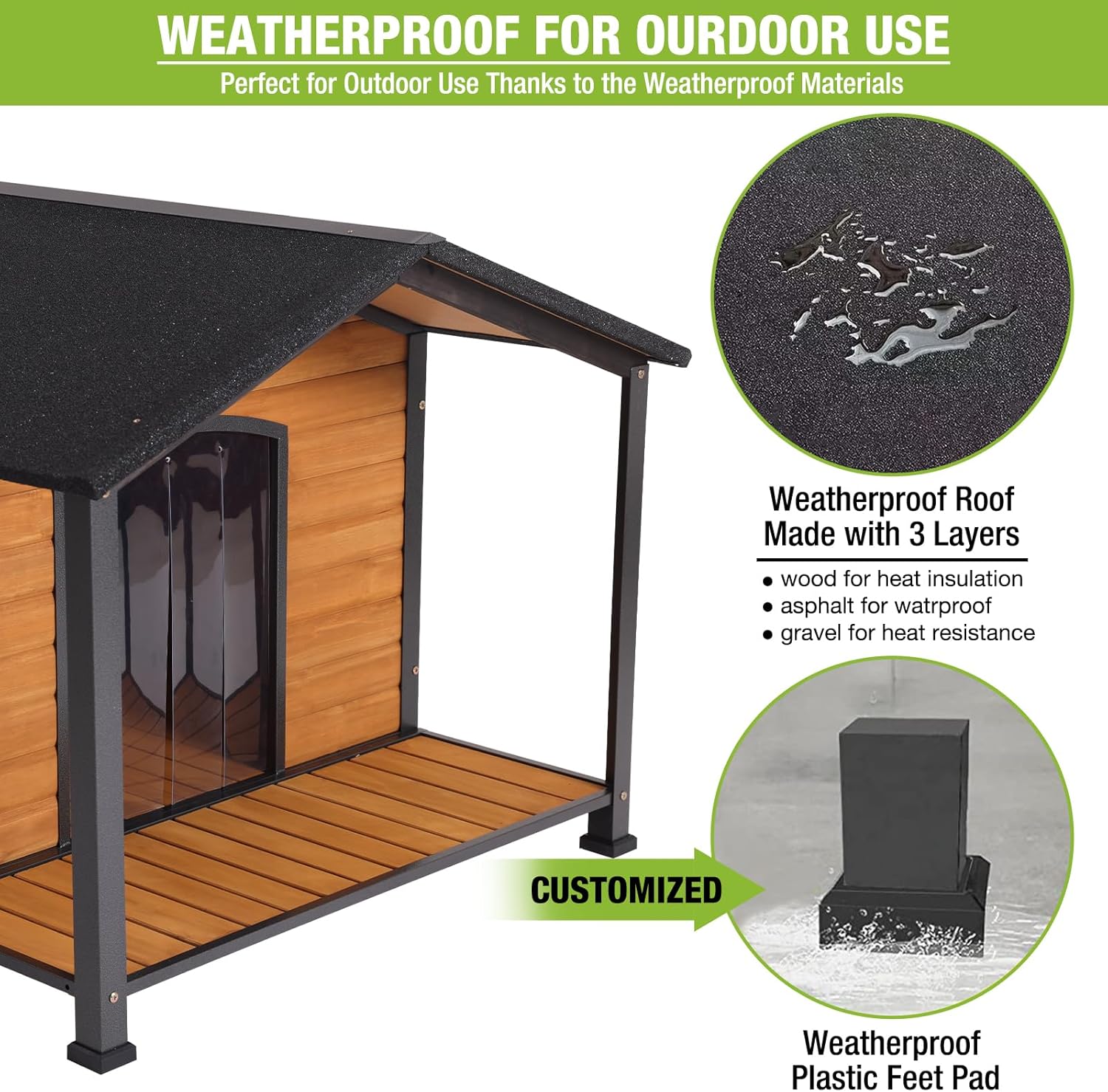 - 【Waterproof】Wooden Dog house made of 100% nature Fir wood with asphalt roof ,waterproof feet pad,high quality curtain to keep the room comfortable & dry. Perfect for indoor and outdoor use.