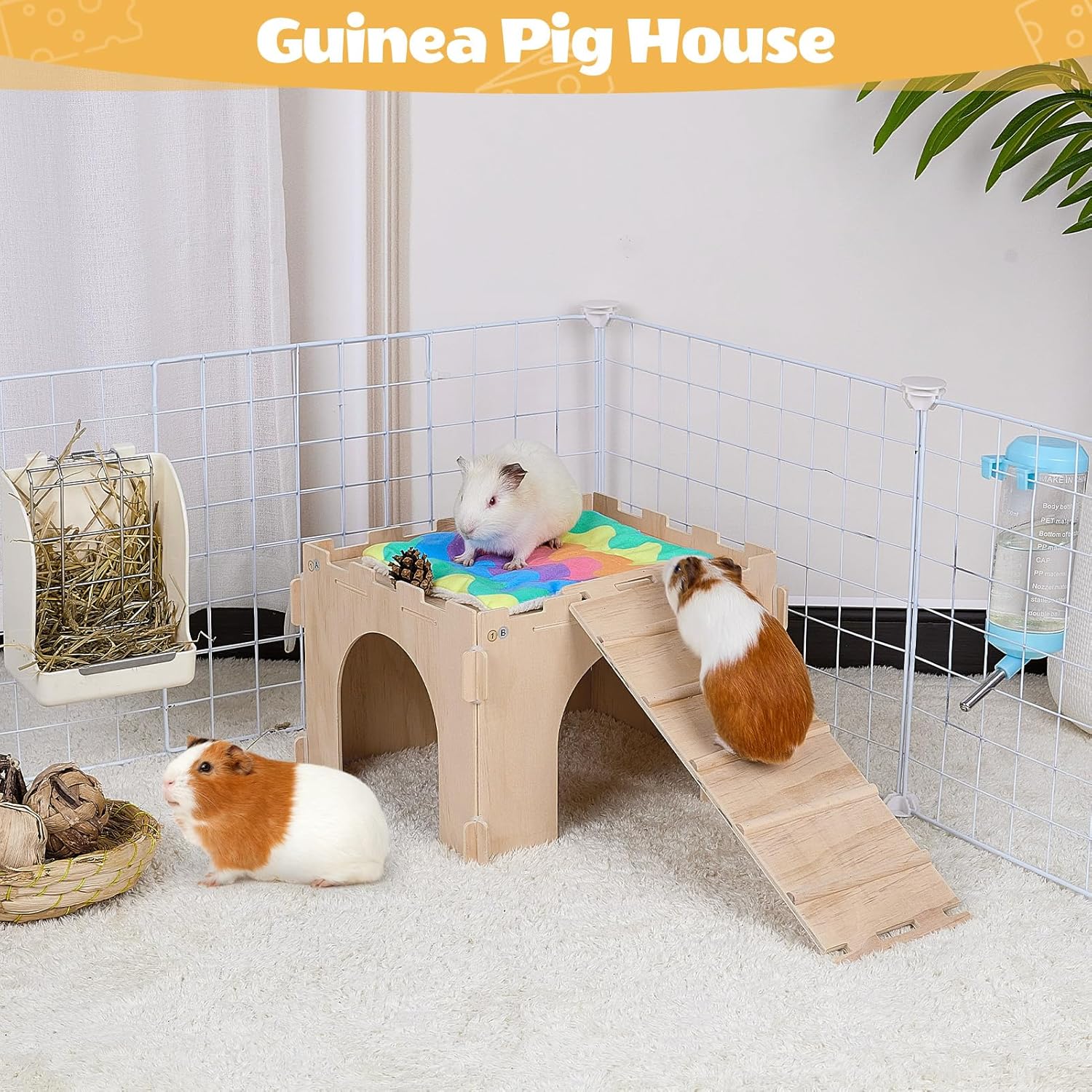- Superior Quality Material: The guinea pig castle is made of pine plywood; Easy to install without glue or nails, avoiding pet injuries; It has structural characteristics such as tight structure, not easy to deform, and strong load-bearing capacity