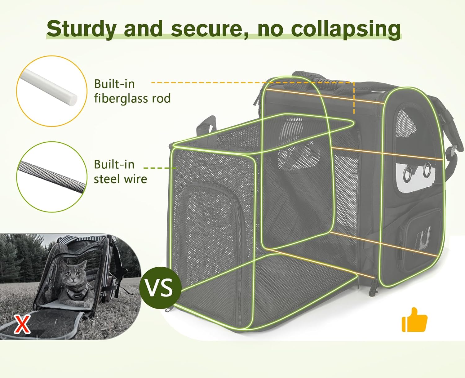 - 【 EXPANDABLE DESIGN 】: Expanded size: 13.4" L x 24.4" W x 17.3" H. This pet backpack with an expandable back design gives your pet more space to rest and increases airflow, allowing your pet to move around more comfortably and reducing anxiety.