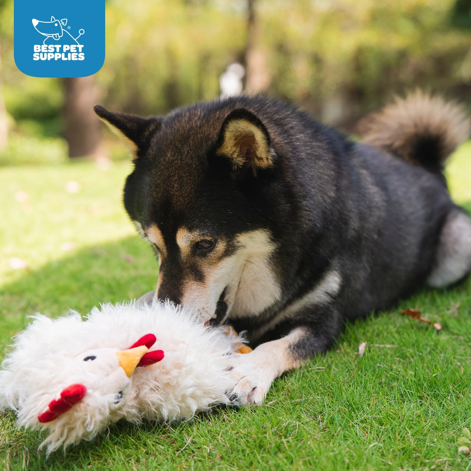 Best Pet Supplies Interactive Squeaky Dog Chew Toy, Ideal Dog Toys for Chewers, Small, Medium & Large Dogs, and Fetch Lovers - Crinkle Chicken (Beige), Large