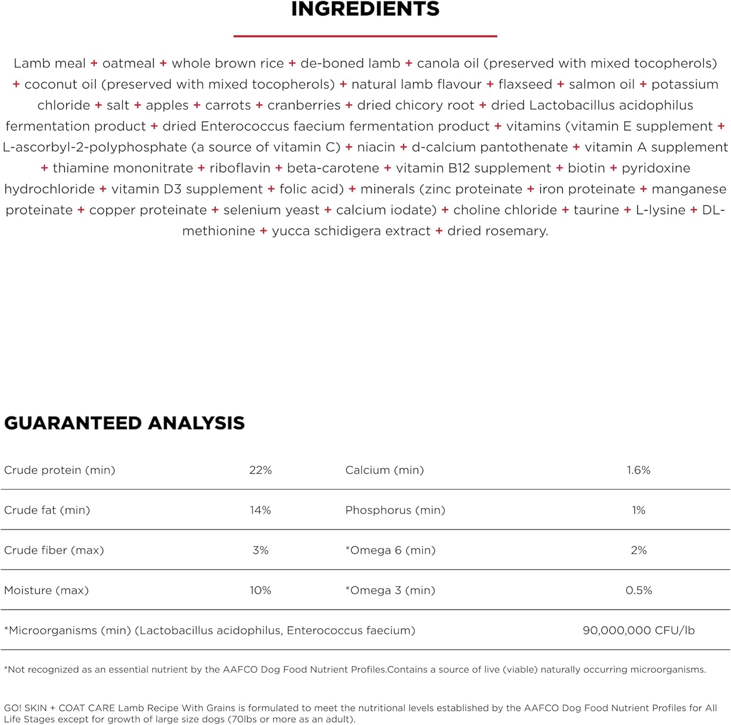 Go! Solutions Skin + Coat Care, Dry Dog Food, Lamb Recipe with Grains, 22 lb Bag