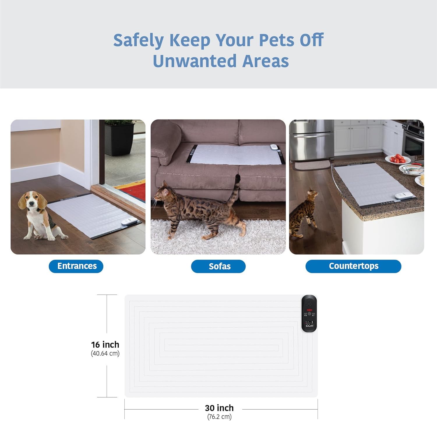 SVD.PET Pet Training Mat with Tester, 30" X 16", Pet Shock Pad, Dogs & Cats Electronic Repellent mat for Indoor, 3 Training Modes, 5 Levels, Pet Safe Mode (Black Controller)
