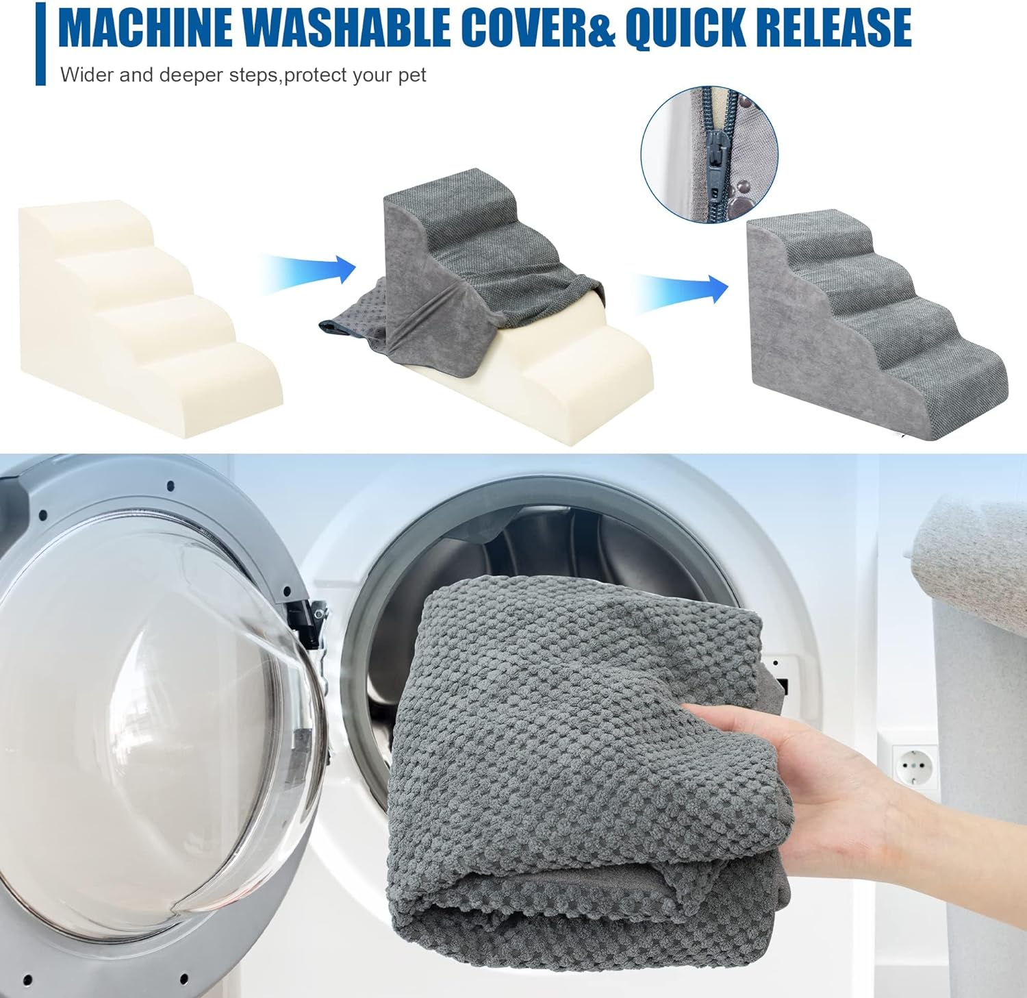 - Double Sided Anti Slip: The dog steps cover is made of corduroy with greater friction than other fabrics, which provides extra grip while in use, the bottom features nonslip rubber dots, preventing pets from sliding while climbing, providing pets with double safety protection