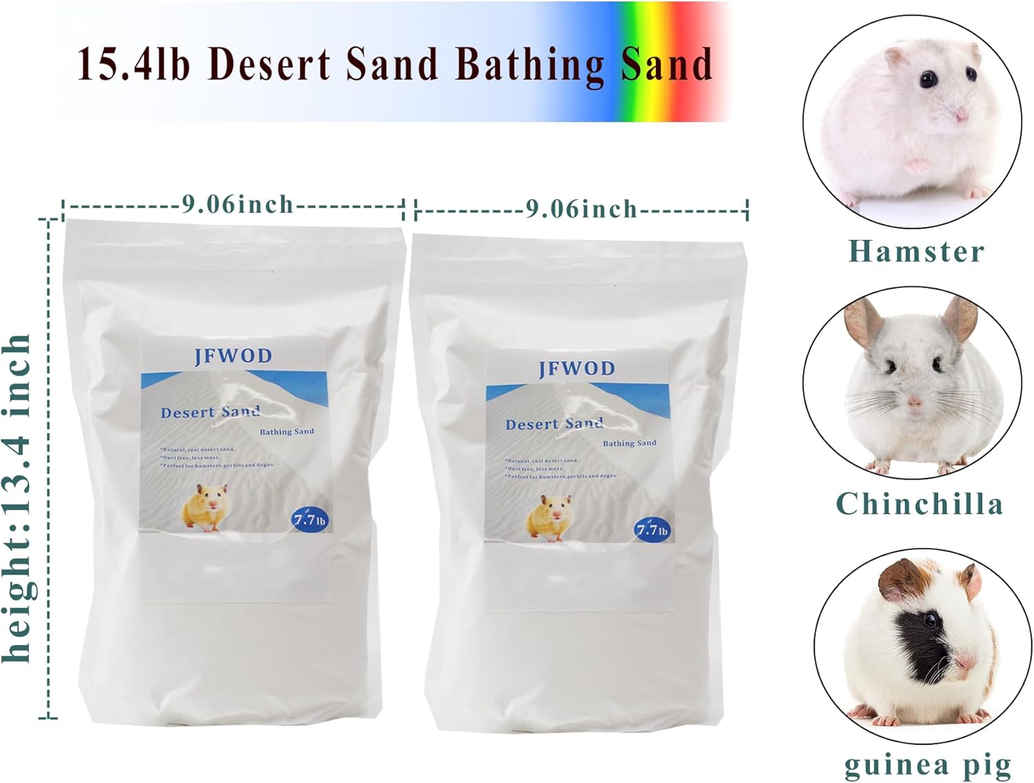 - JFWOD Bathing sand suitable for hamsters, gerbils, chipmunks, guinea pigs, chinchillas, Syrian hamster, etc. 15.4lb large capacity enables your little pets enjoy a long time.