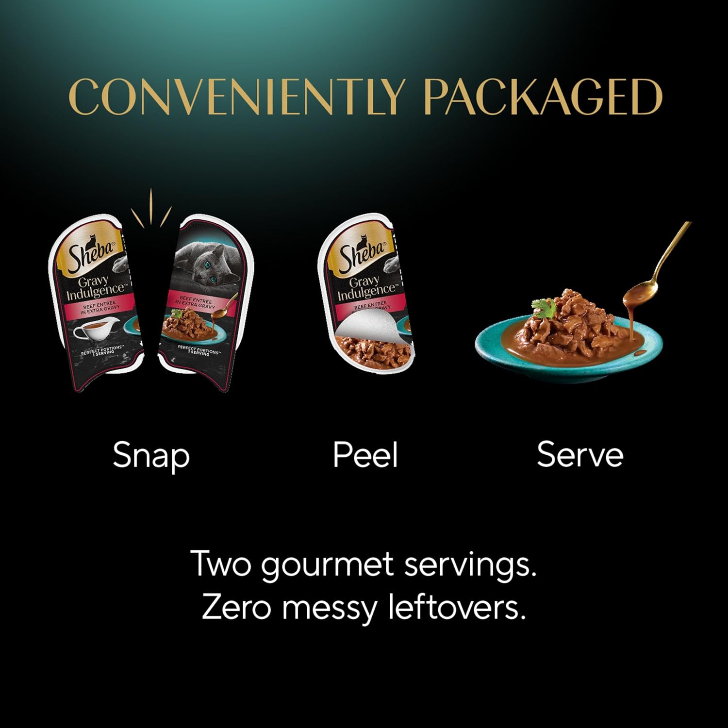 Sheba Gravy Indulgence Adult Wet Cat Food Beef Entree in Extra Gravy, 2.6 oz. Twin-Pack Trays (24 Count, 48 Servings)