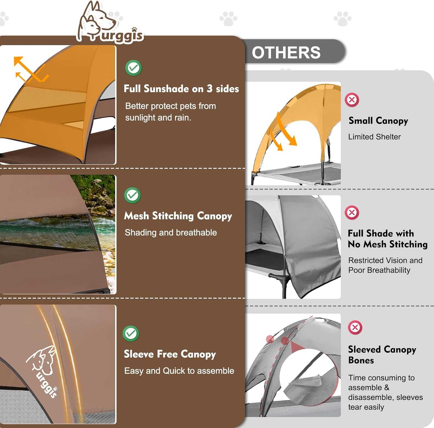 - Wider & Larger Shade Lifted Dog Bed: Comes with a large waterproof UV-proof canopy, this outside dog bed provides great shade than most other dog cots. Further more, with mesh piecing on 3 of the sides, this canopy will allow great air flow and will not block dogs' view. With this item, you will be rest assured when pets relaxing outside in summer;
