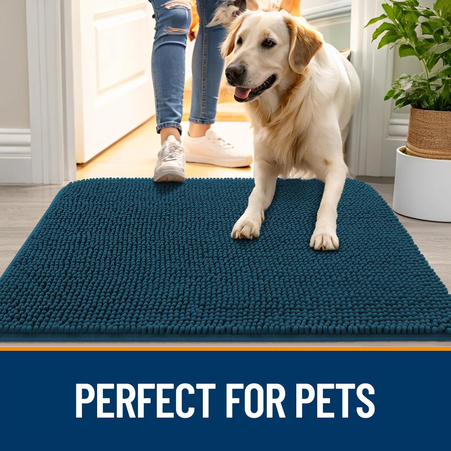 OLANLY Dog Door Mat for Muddy Paws 36x24, Absorbs Moisture and Dirt, Absorbent Non-Slip Washable Doormat, Quick Dry Chenille Mud Mat, Entry Indoor Entryway Carpet for Inside Floor, Atlantic Blue