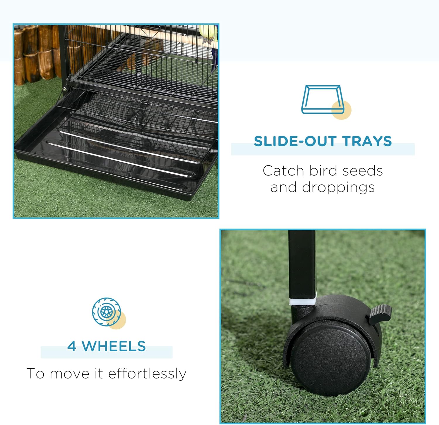 PawHut Large Bird Cage with 1.7 ft. Width for Wingspan, Bird Aviary Indoor with Multi - Door Design, Fit for a Canary, Finch, Conure, 55", Black