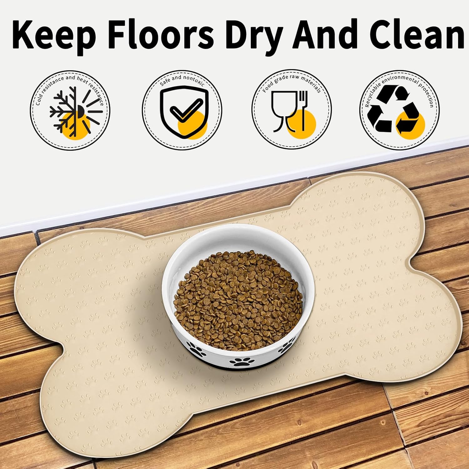 - Health Silicone Material - This pet bowl mat is non-toxic, and non-allergenic, protecting the health and safety of your pet's feeding. 31.8" x 16" holds two extra large bowls, perfect for large-sized dogs and cats to enjoy a delicious meal tray.