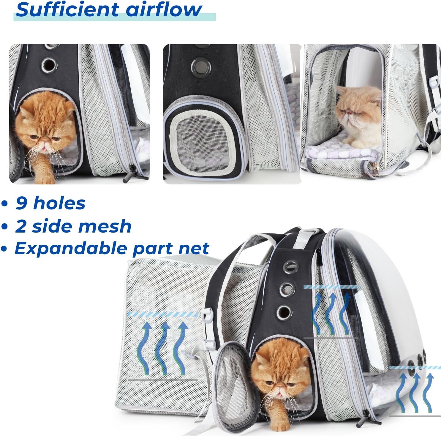 Lollimeow Cat Carrier Backpack, Bubble Dual Expandable Backpack Carrier, Pets and Small Dogs,Airline-Approved, Designed for Travel, Hiking, Walking & Outdoor Use (Dual Expandable-Black)