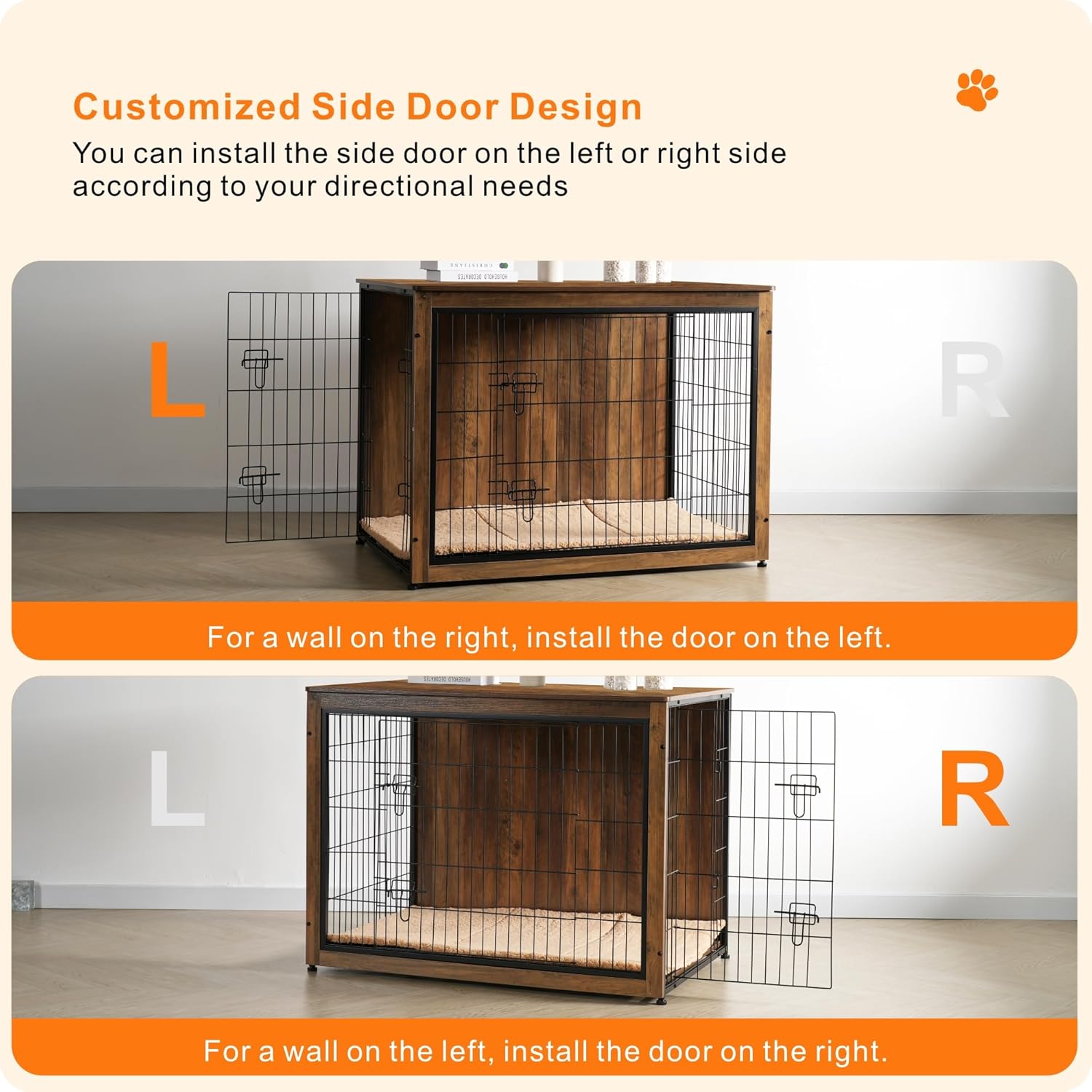 DWANTON Dog Crate Furniture with Cushion, Wooden Kennel Table with Double Doors, Indoor Dog House, Extra Large, 43.3" L, Warm Brown