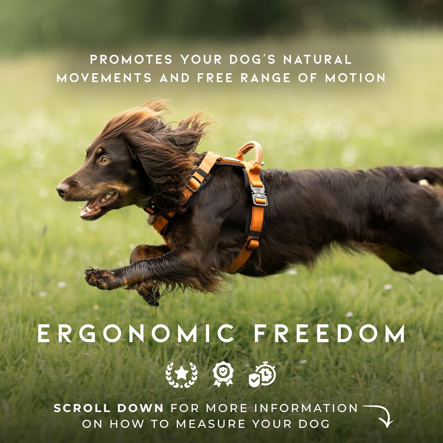 - ERGONOMIC FREEDOM — Engineered with an intentional Y-shaped design, the Explorer Harness promotes your dog’s natural movements and free range of motion. Our harness is constructed to ensure unrestricted mobility around your dog’s shoulders, supporting better posture and joint health.