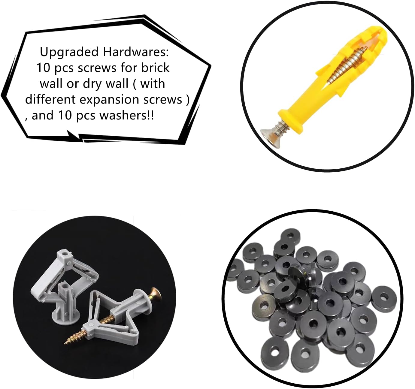 - 【UPGRADED HARDWARES】Comes with 10 pcs screws for brick wall or dry wall ( with different expansion screws ) , and 10 pcs washers to secure the rug to wall better.