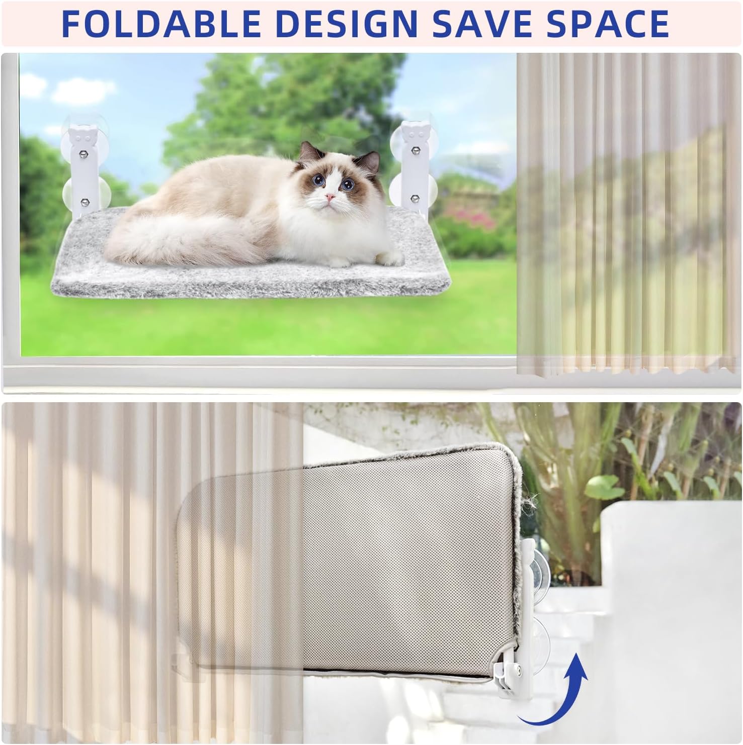 pettycare Cat Window Perch, Cordless Cat Window Hammock Bed with 4 Strong Suction Cups, Foldable Kitten Balcony Seat for Inside Hold Up to 40lbs, Solid Metal Frame and Soft Reversible 2 Fabrics Cover
