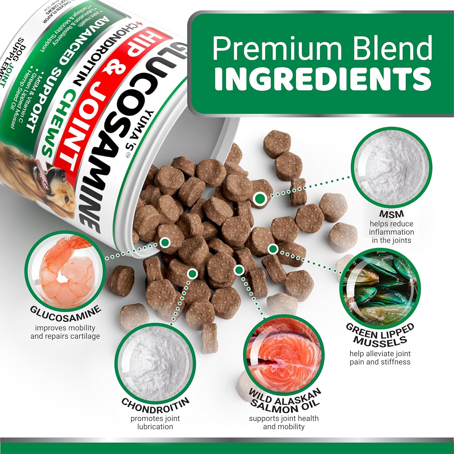 YUMA'S Glucosamine for Dogs - Hip and Joint Supplement for Dogs - 170 Ct - Glucosamine Chondroitin Chews - Joint Pain Relief Supplement with MSM - Advanced Health - Mobility Support - Made in USA