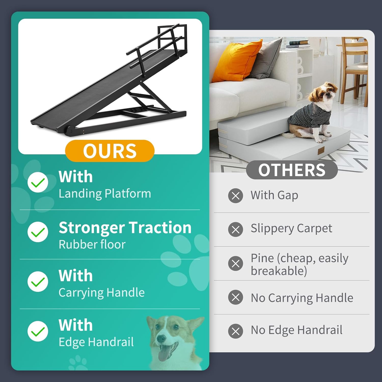 - HIGH TRACTION & ANTI-SLIP - Upgrade Rubber Mat provides anti-slip surface which gives incredible traction to your dog. Built from sturdy wood and equipped with stainless steel fasteners to provide heavy-duty support and maximum durability, It can support pets up to 200 pounds.