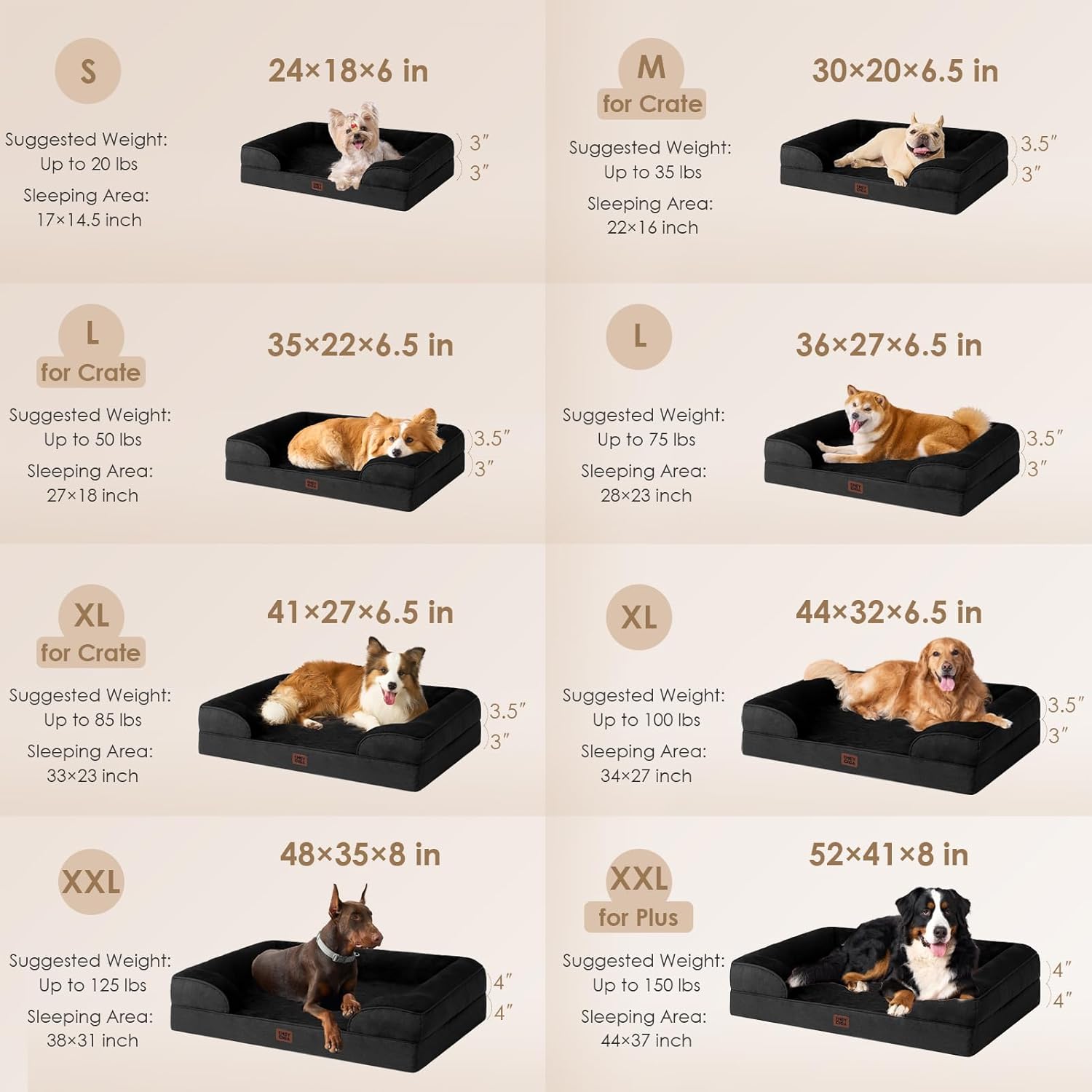 - MEMORY FOAM: The EHEYCIGA orthopedic dog bed features memory foam and egg crate foam to provide even support and pressure relief. It offers a good balance of softness and support, making it particularly suitable for elderly dogs to alleviate joint pressure.