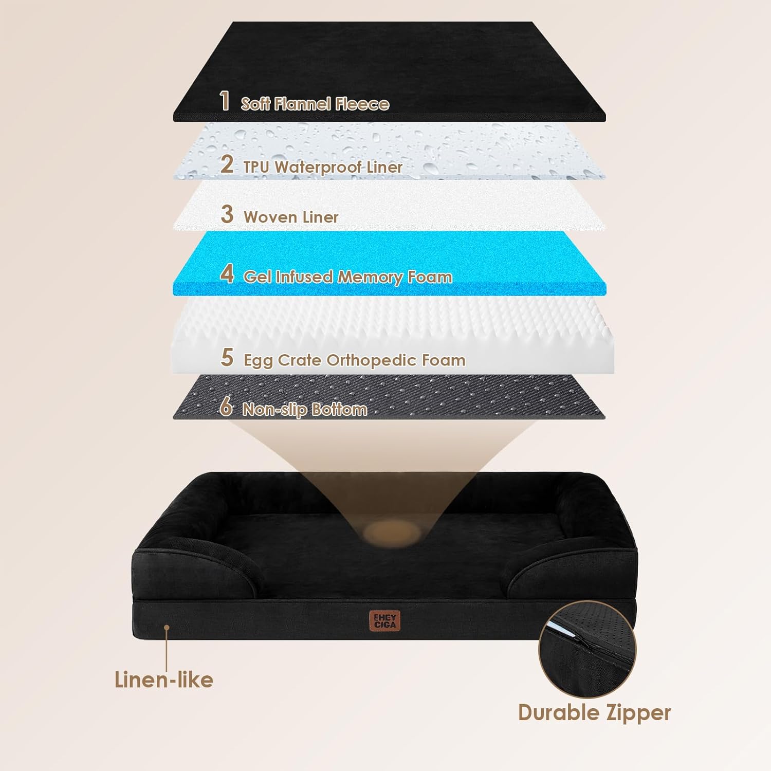 EHEYCIGA Orthopedic Dog Beds for Large Dogs, Waterproof Memory Foam Large Pet Bed with Sides, Non-Slip Bottom and Egg-Crate Foam Dog Couch Bed with Washable Removable Cover, Black