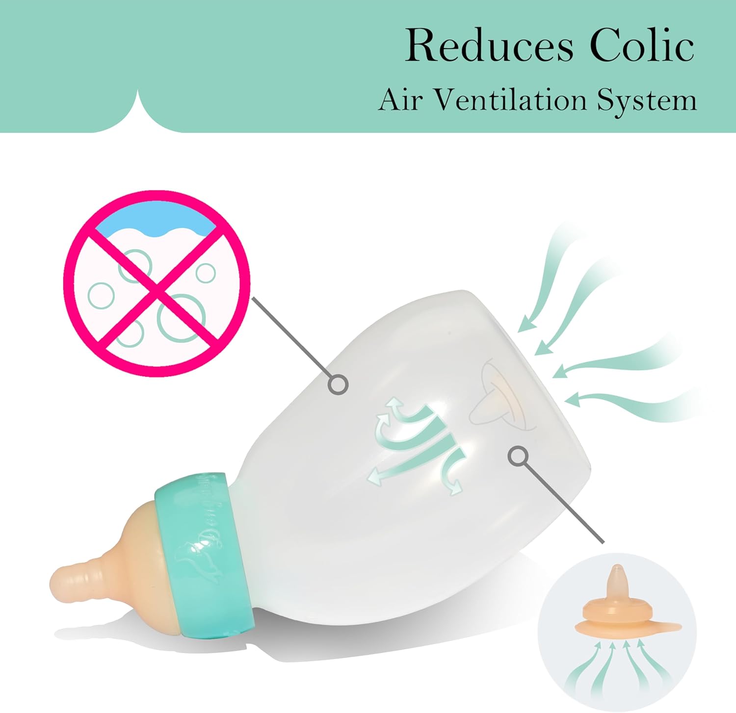 - Bottle ventilation system similar to human babies: no need for ventilation when drinking milk, reducing the probability of choking on milk. A safety protection like giving a human baby