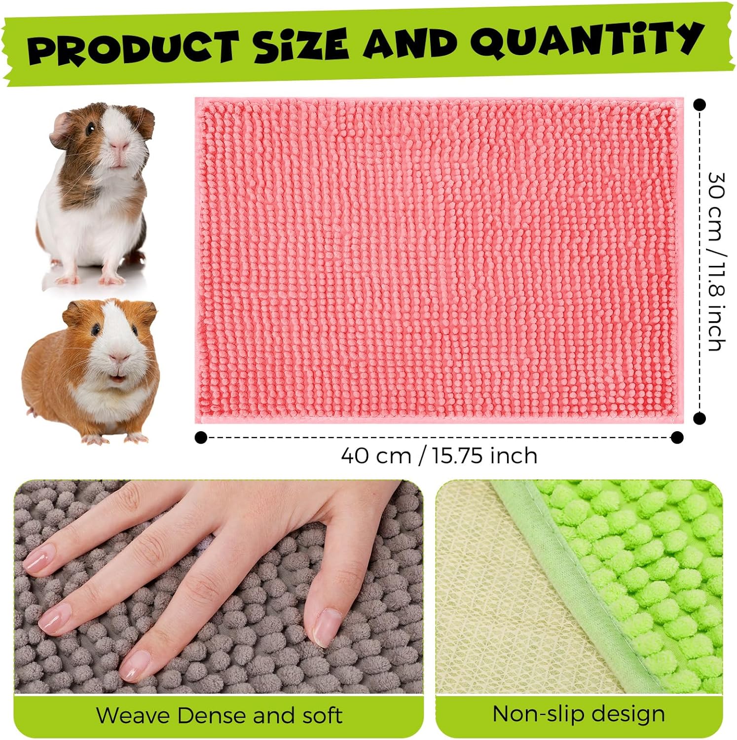- Comfort and Stability: crafted from microfiber chenille, which is known for its comfort and absorbency, these rabbit bedding mats are soft and comfortable for your pet; The sturdy material and smooth surface ensure a cozy living environment; Moreover, the inclusion of a non slip design on the back ensures the liner stays in place, providing comfort and stability for your pet