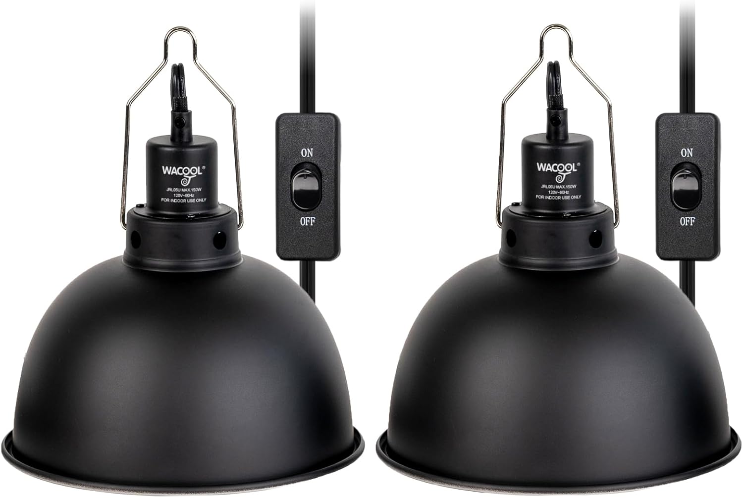 Reptile Light Fixture 2 Pack, 8.5 in Deep Dome Reptile Heat Lamp Fixture, Optical Reflection Terrarium Light Fixture for Reptile UVB UVA Heat Basking Bulbs, Separate Switch & Hook