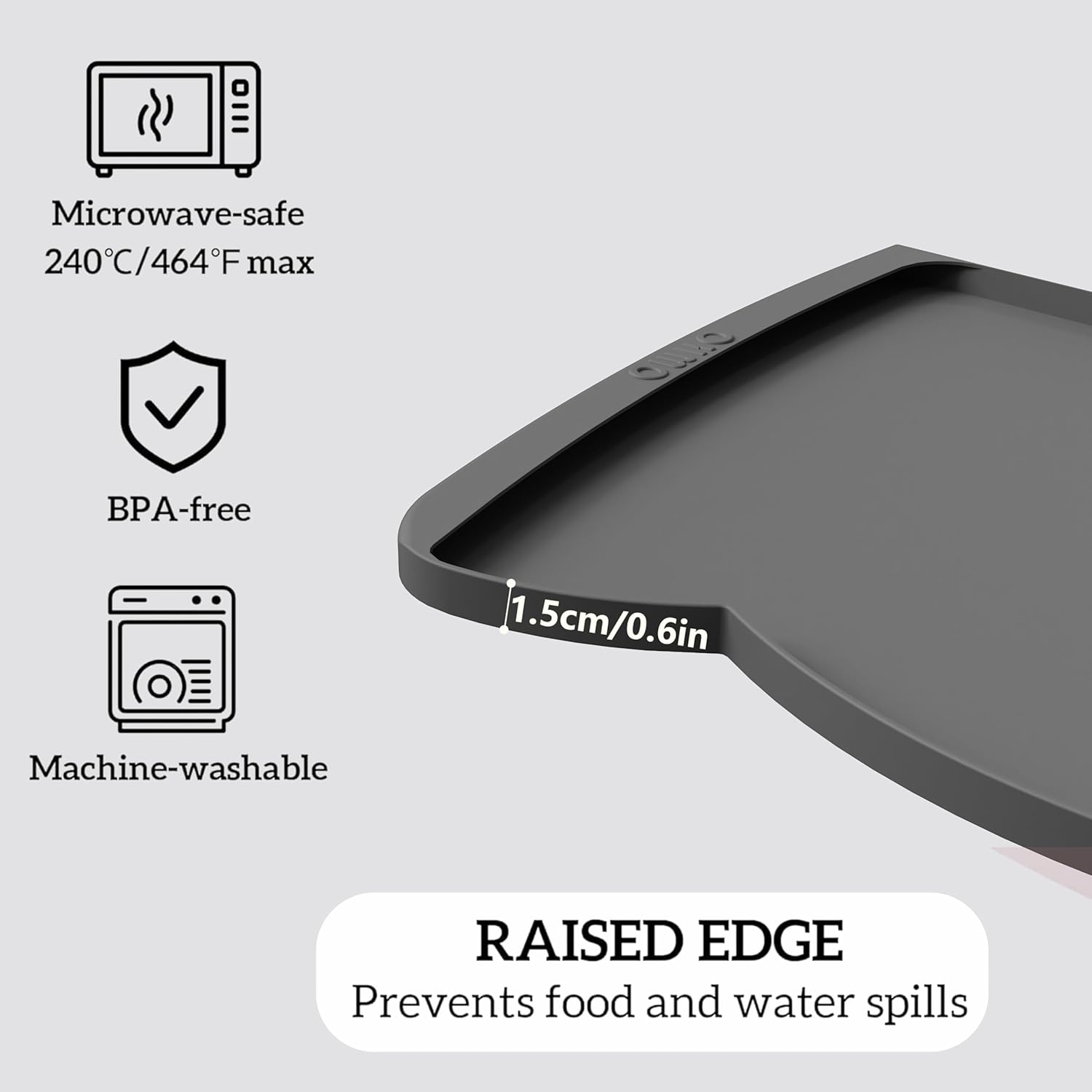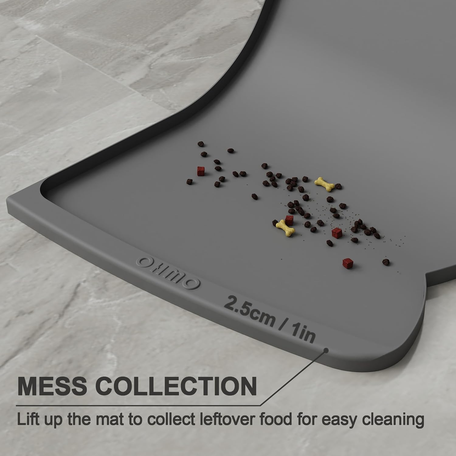 OHMO Dog Food Mat(Dark Grey, 24 * 15'') w/Residue Collection Pocket Silicone Pet Feeding Mat for Floor High Edges Anti Spills Waterproof Cat Water Bowl Tray, Easy Clean Placemat