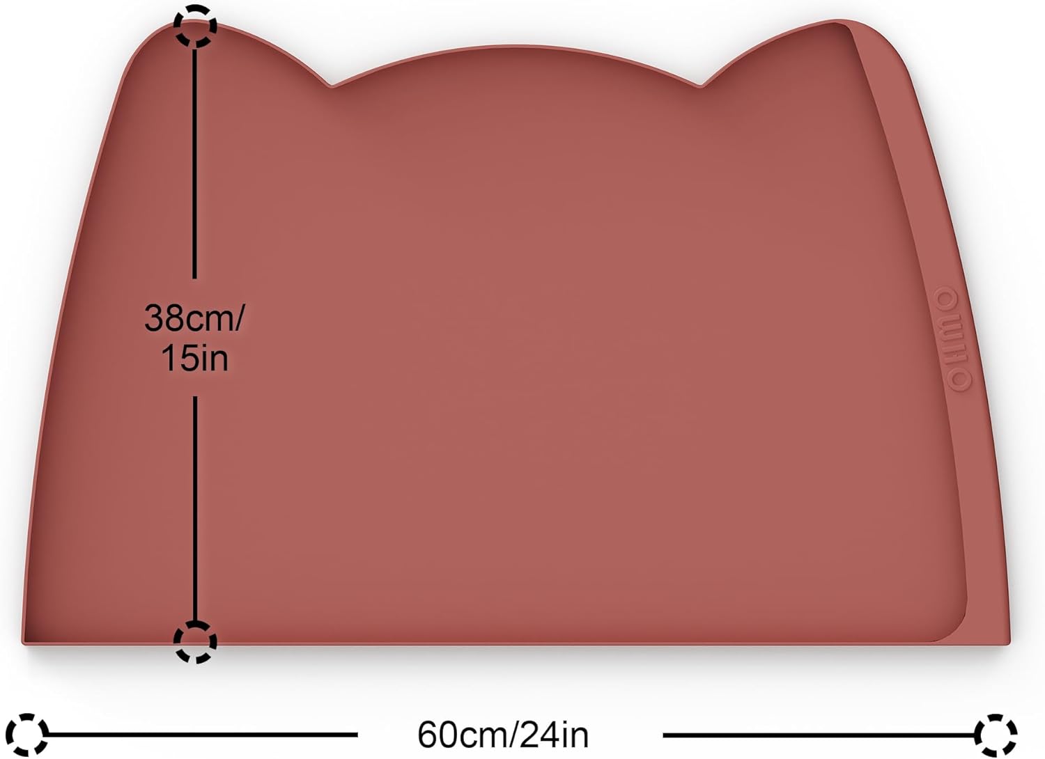 OHMO Dog Food Mat(Erythrinus, 24 * 15'') w/Residue Collection Pocket Silicone Pet Feeding Mat for Floor High Edges Anti Spills Waterproof Cat Water Bowl Tray, Easy Clean Placemat