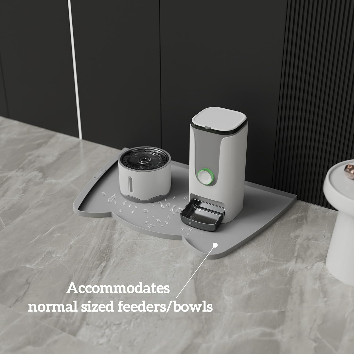 OHMO Dog Food Mat(Ash, 24 * 15'') w/Residue Collection Pocket Silicone Pet Feeding Mat for Floor High Edges Anti Spills Waterproof Cat Water Bowl Tray, Easy Clean Placemat