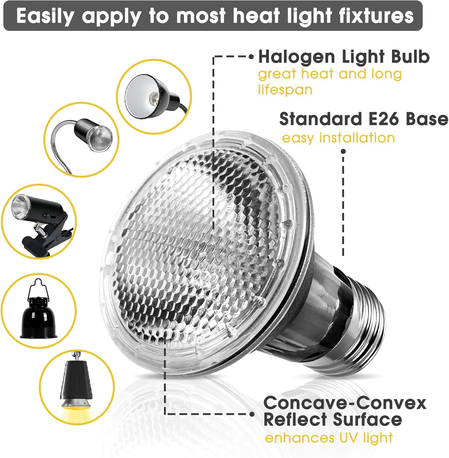 - Versatile Usage: Designed for reptiles and small animals, this heat light bulb suits various habitats, from reptile terrariums to pet enclosures perfect for Reptiles, Amphibian, Bearded Dragon, Lizard, Chicken