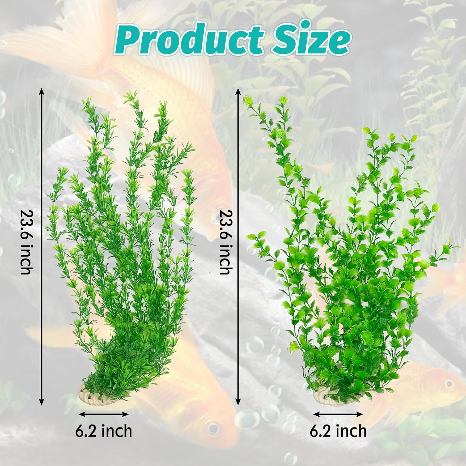 - EASY TO MAINTAIN : Aquarium plants plastic do not require specialized lighting, fertilizers or carbon dioxide. Compared to real plants, it is very easy to clean, saving time and effort and eliminating the hassle of maintenance. These fish tank plants for decorations look lifelike and can be used for a long time, making it easy for you to enjoy the wonders of the aquarium world. Size: 23.6 x 6.2 inches (H x W). A set of two green water plants to make your aquarium vibrant and more beautiful