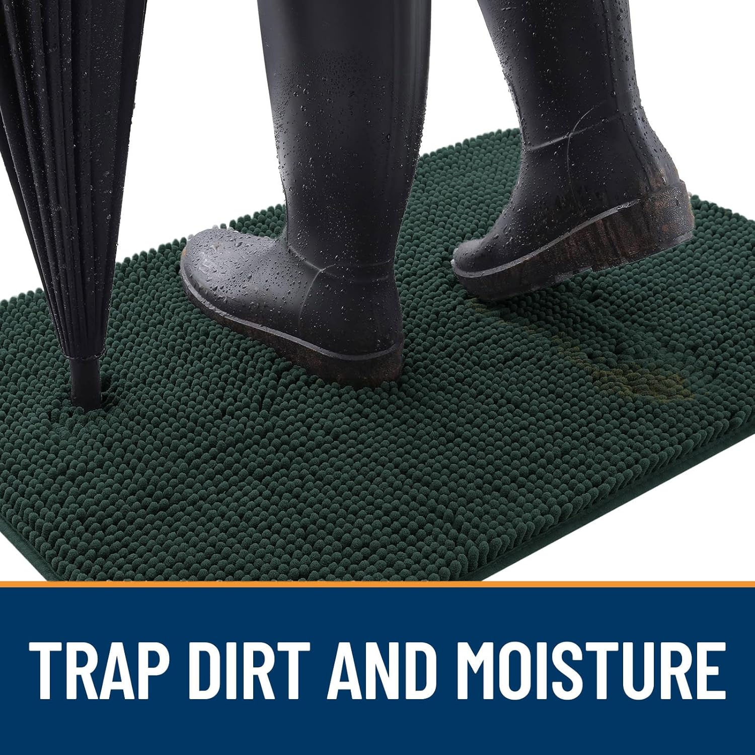 OLANLY Dog Door Mat for Muddy Paws 24x16, Absorbs Moisture and Dirt, Absorbent Non-Slip Washable Doormat, Quick Dry Chenille Mud Mat, Entry Indoor Entryway Carpet for Inside Floor, Blackish Green