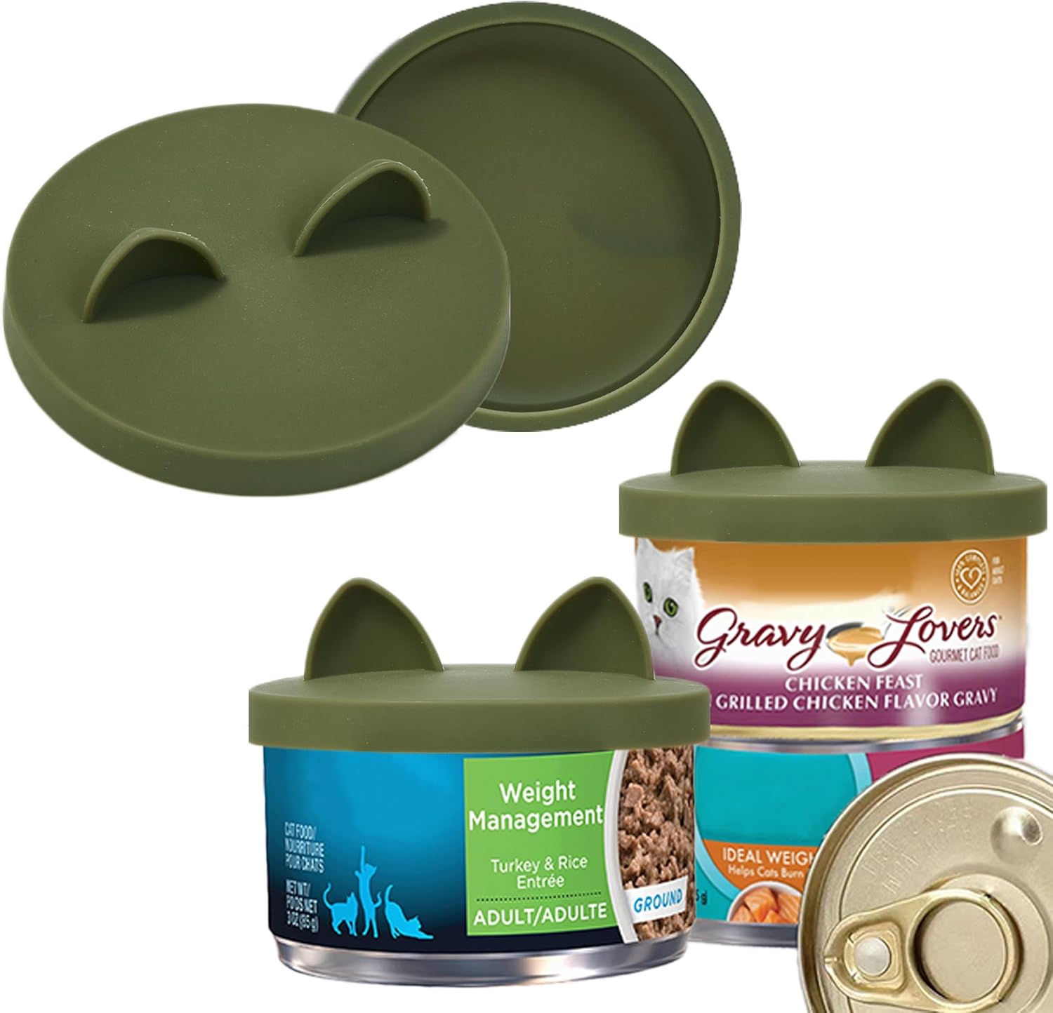 OHMO 2 Pack Cat Food Can Lids, Small Size (3 oz) Silicone Pet Food Can Lids Covers for 3 oz Cat Food Cans, Camo Green