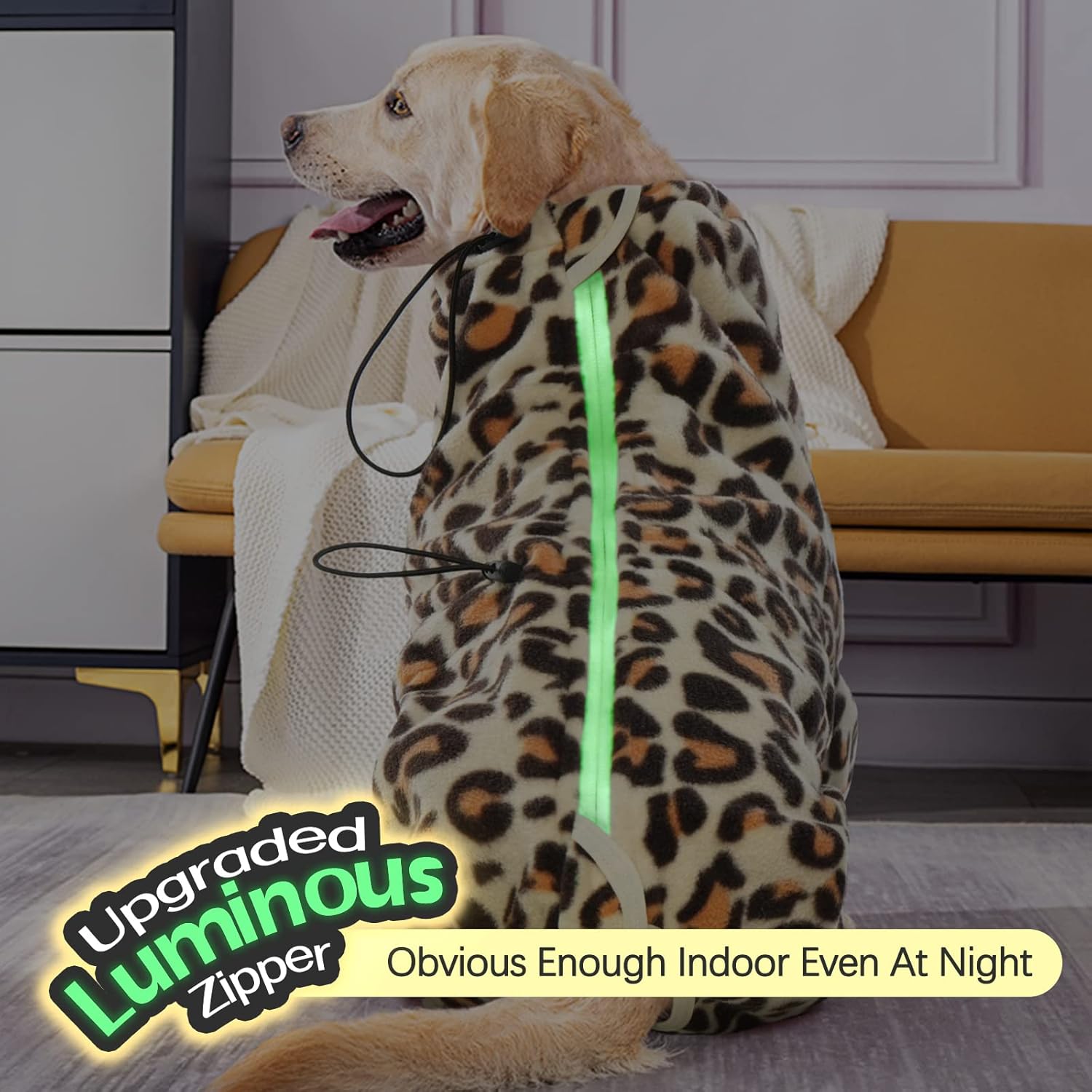 ROZKITCH Dog Jacket with Legs, Pet Windproof Warm Cold Weather Jacket Vest with Luminous Zipper, Jumpsuit Apparel Outfit Clothes for Large Giant Dog Brown 4XL