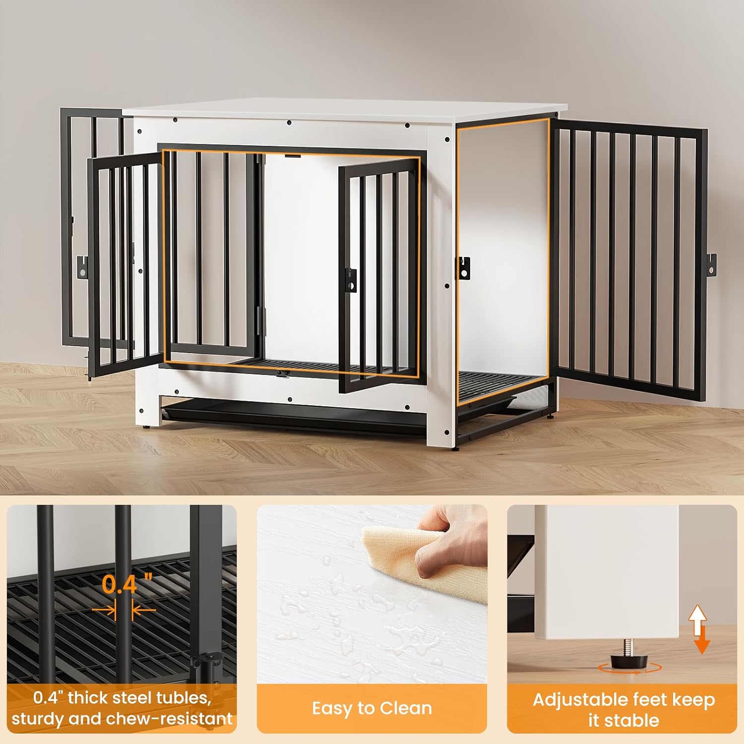 Dog Crate Furniture, Dog Crate End Table for Small and Medium Dogs,Wooden Cage Kennel Furniture Indoor, Modern Dog Crate with Multi-Purpose Removable Tray, Double-Doors Dog Furniture, White