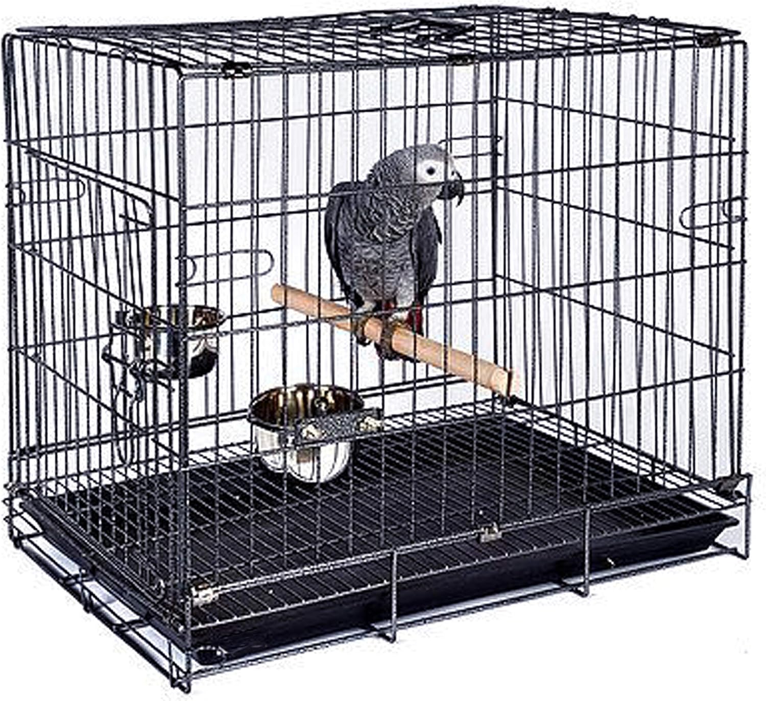 Durable Easy Portable Collapsible Metal Travel or Veterinary Collapsable Parrot Bird Carrier Beaks-Proof Easy Clean Carrier Cage with Stainless Steel Feeder Bowls Natural Wooden Perch