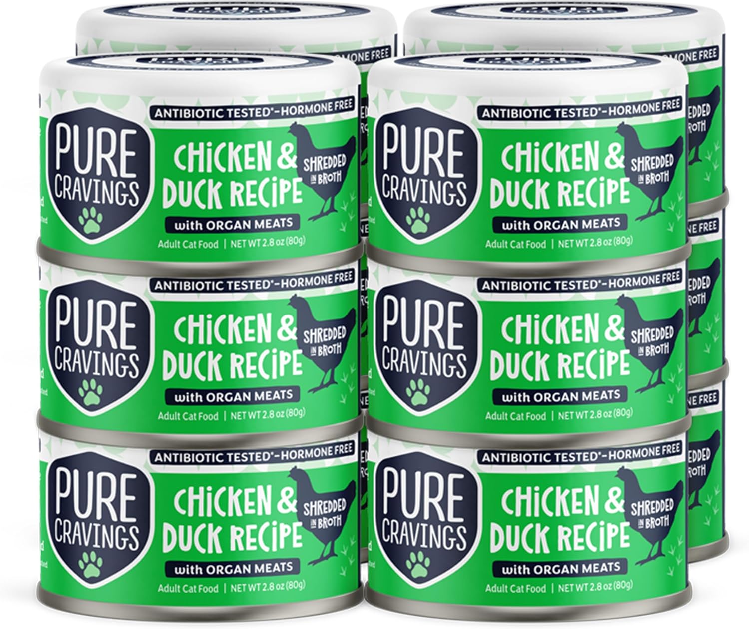 Chicken and Duck Recipe in Broth, Shredded Wet Cat Food, Grain-Free Protein, Non-GMO, 12 Pack