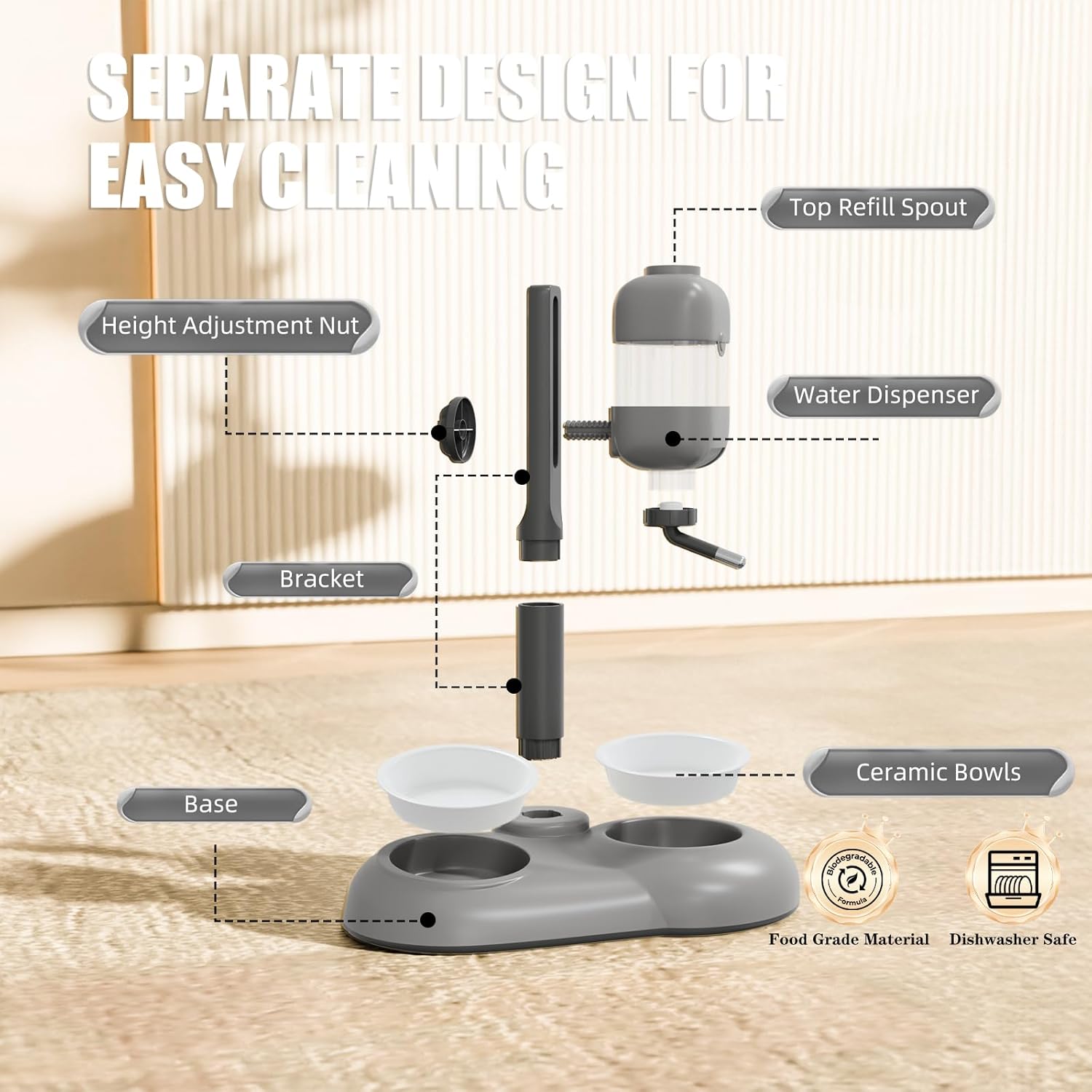 - 【Eco-friendly Material】MITOCAPY dog bowls are made of eco-friendly food-grade quality PC material, which is very safe for your pets. All parts can be easily disassembled and both two stainless steel dog bowls and ceramic dog bowls can be washed in the dishwasher.