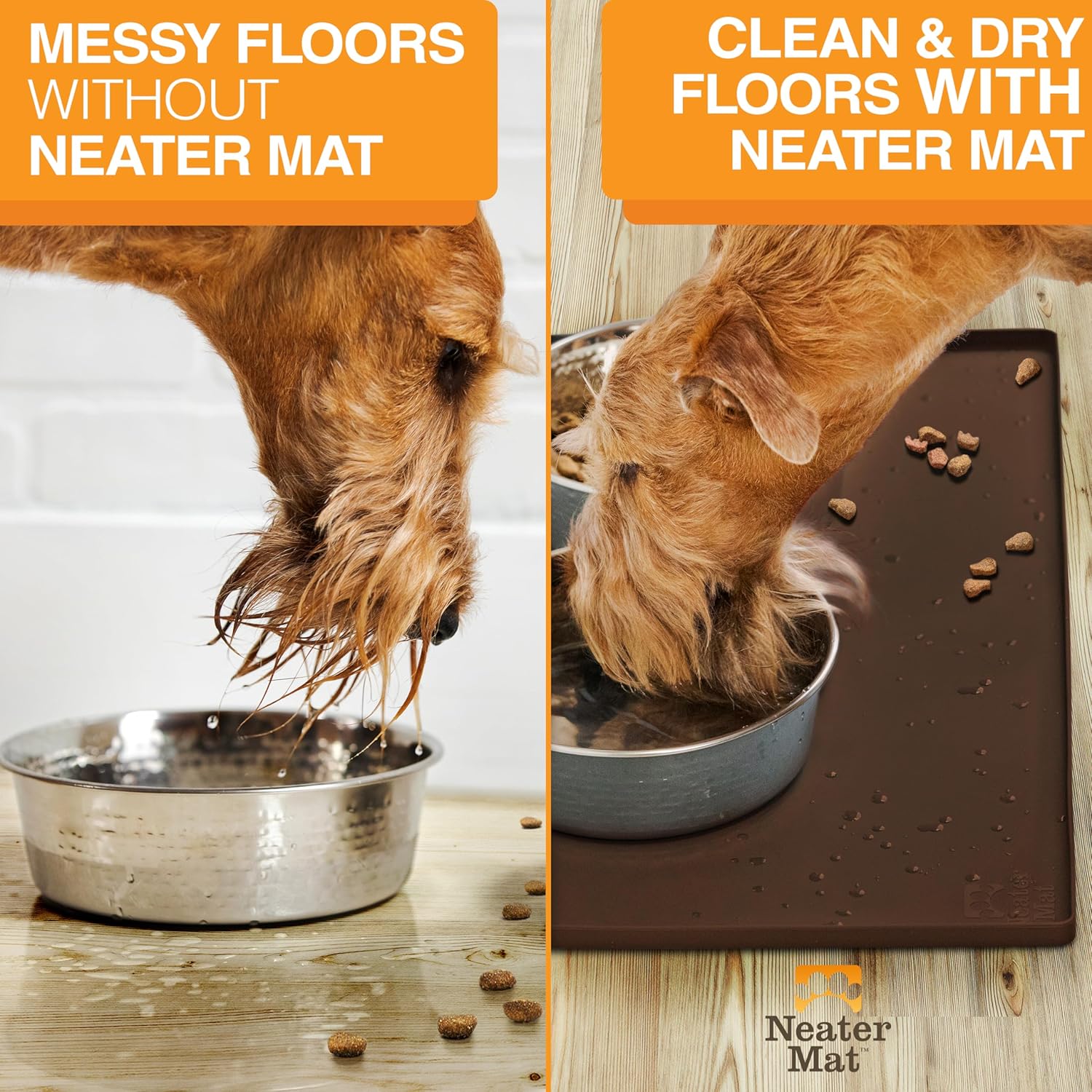 Neater Pet Brands Neater Mat Pet Mats for Food and Water, Cat & Dog Bowl Mat Waterproof Silicone, Feeding Tray, Dog Food Mats for Floors, Placemat w/Raised Edge for Under Bowls, 19” x 12”, Brown