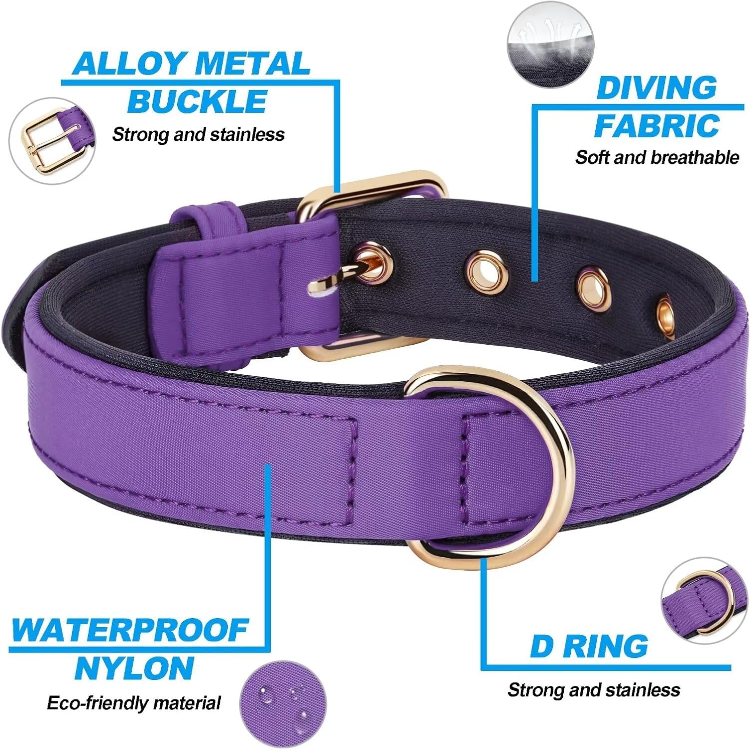 Didog Soft Padded Dog Collars for Small Dogs, Lightweight and Breathable Purple Dog Collar with Metal Buckle, Purple, M