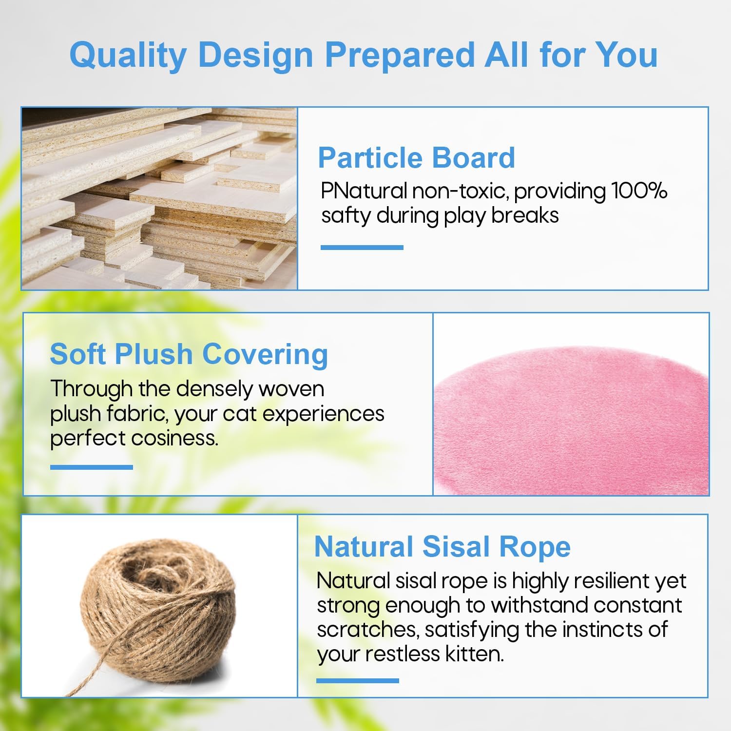 - 🐱 【Posts for Scratching Covered in Sisal 】These are scratching surfaces that are integrated into the framework. Cats love to bury their claws in sisal because it's a sturdy substance with a coarse texture. Our cat tree promotes healthy scratching habits and helps discourage cats from damaging furniture by offering dedicated spaces for them to scratch.