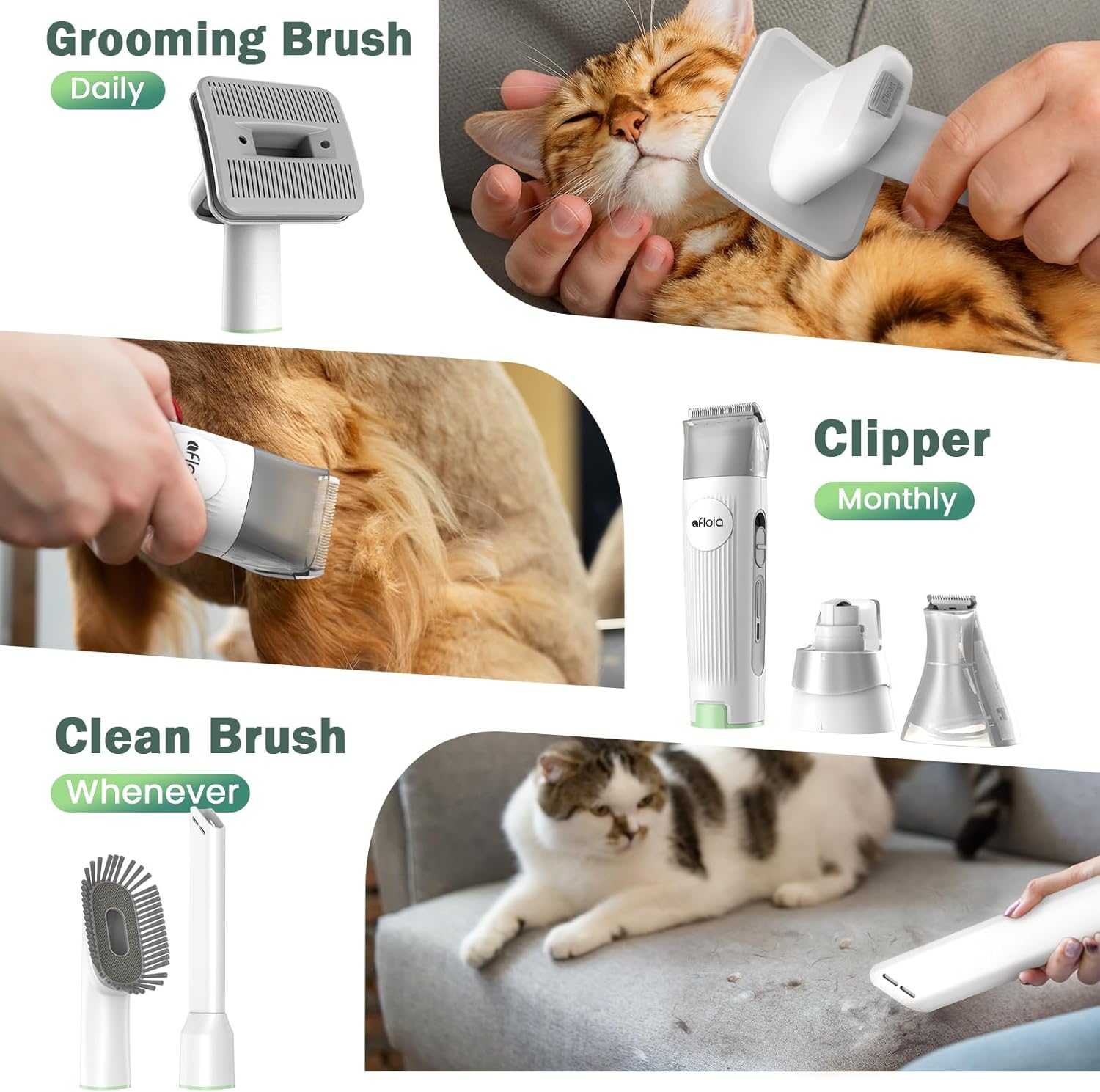- 🐶【Powerful Suction & Larger Dust Cup】 The cat grooming kit has 3 suction levels to choose from, it is powerful enough to effectively get hair sucked even if your fur kids have a thick coat. And the 1.5L dust cup is 50% larger than others that no need to empty the cup frequently during grooming.